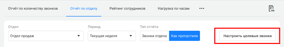 Это успешные вызовы, в которых сотрудники отдела разговаривали с клиентами столько, сколько предусмотрено для целевых звонков. Если в рамках одного звонка было несколько разговоров с сотрудниками отдела, то при определении целевого берется самый длинный разговор.