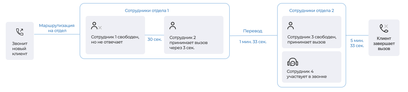 2. Сотрудник 1 перевел вызов на сотрудника 2 внутри отдела.