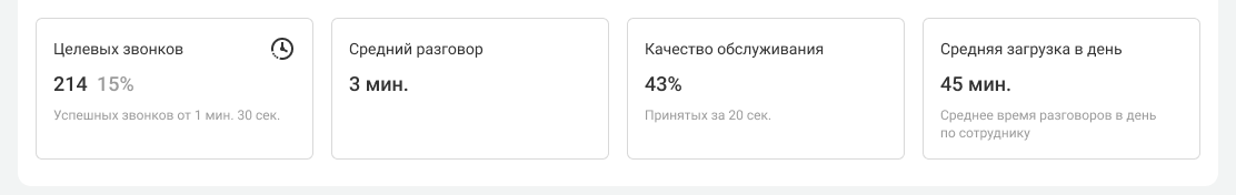 Чтобы разобраться не только в количестве, но и в качестве звонков, далее можно посмотреть следующие показатели: