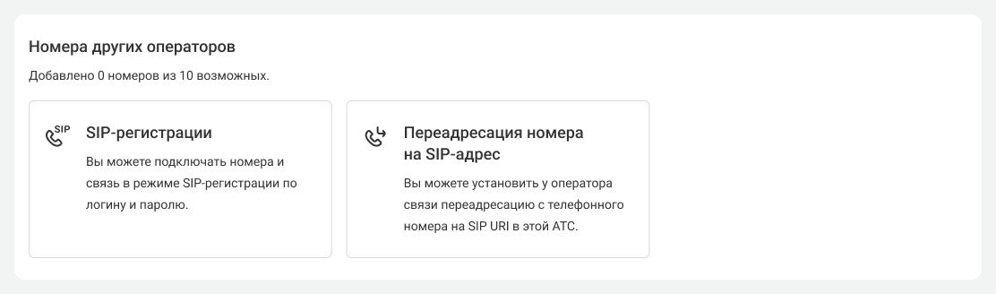 Функция предоставляется без дополнительной платы. Вы можете подключить до 30 внешних номеров. Для расширения лимита обратитесь в поддержку.
