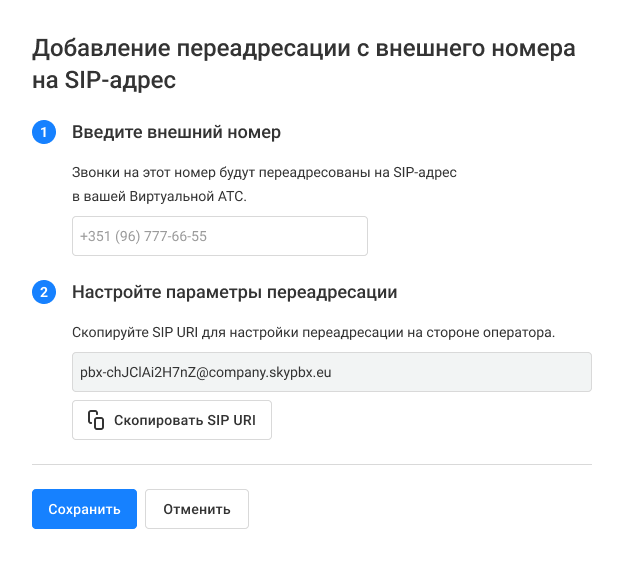 2. Введите номер телефона и скопируйте полученный SIP URI.