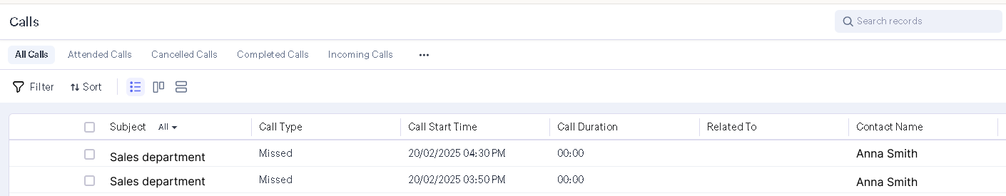 Если в АТС у вас подключена история и запись звонков, все звонки будут передаваться в Zoho: