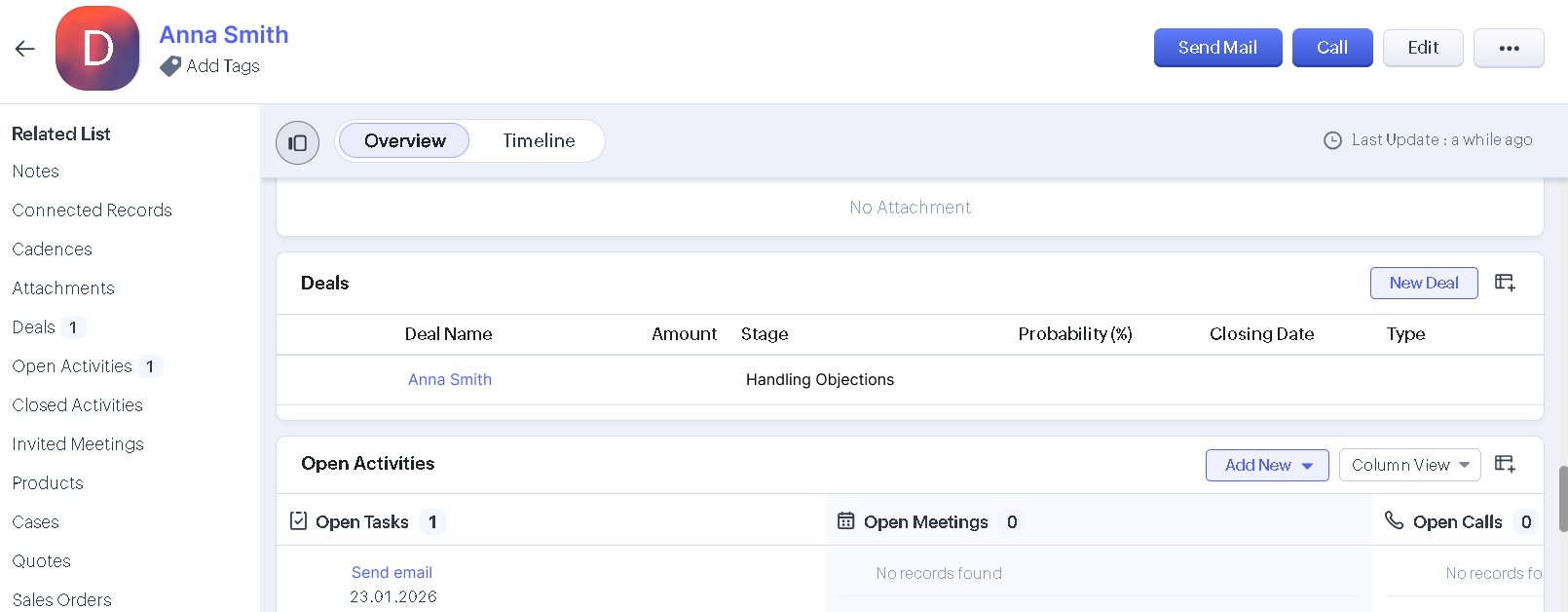 Одно из главных правил успешного бизнеса – фиксировать каждый звонок и каждого позвонившего. Даже если ваш менеджер не успел или забыл создать контакт или сделку, вы все равно не упустите этого клиента. Необходимая информация о контакте и сделке сохранится в Zoho CRM автоматически, менеджер в любой момент может вернуться к ней и продолжить работу с клиентом.
